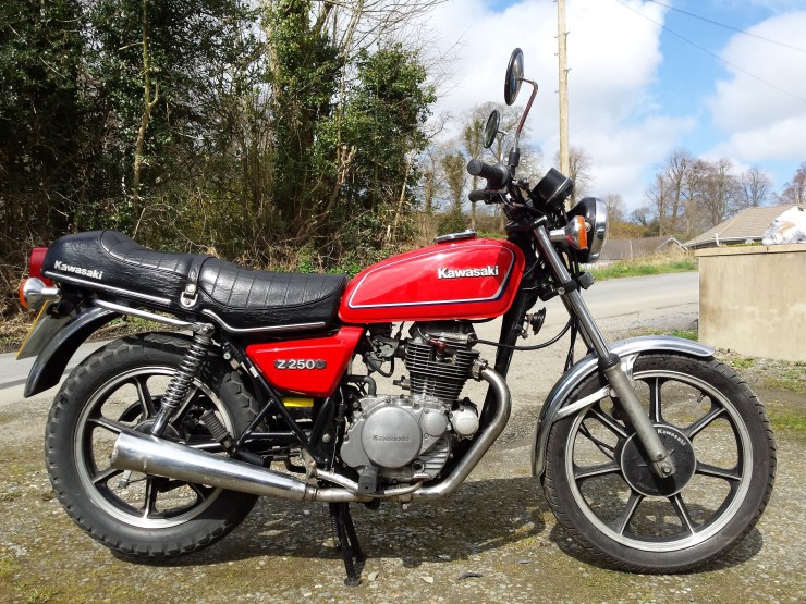 2020 marks the 50th. year of Steve’s love affair with two wheeled motorised transport. That’s 50 years legally on the road + a few years trashing mopeds in fields. The Kawasaki Z250 is the curent one, first registered in 1981 so it becomes a classic next year (no MOT or Tax). The little picture shows the bike he bought aged 16, a 98cc Parilla.